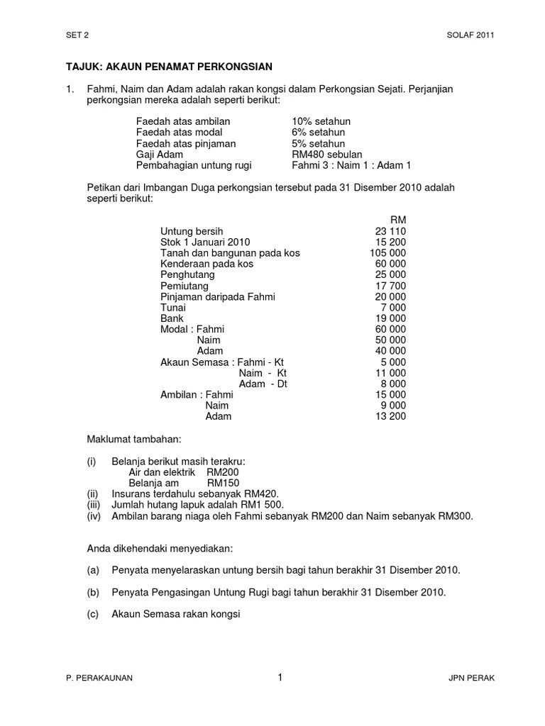 Dokumen, soalan hanya setakat penyediaan imbangan duga, maka adalah lebih baik semua akaun ditutup menggunakan baki h/b dan baki b/b sahaja format penyata untung rugi. Koleksi soalan spm kertas 1 spm (objektif) kertas 2 spm;